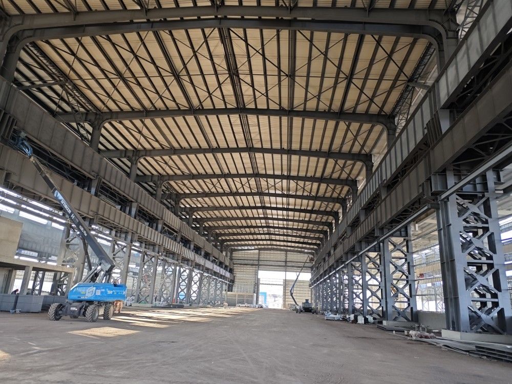 The horizontal framework of the factory building includes roof beams (or roof truss), columns, and foundations. It bears the loads from skylights, roofs, walls, and other parts, as well as its weight, various loads generated by cranes, and longitudinal wall wind loads. These loads are transmitted to the foundation through the transverse framework through the columns.