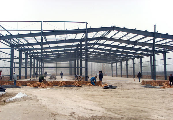 The frame load-bearing structure is a load-bearing system composed of a horizontal frame and a longitudinal connecting member, and the wall only serves as an enclosure. It is suitable for large spans, high plants, and large crane loads. The load-bearing framework is made of steel plate or hot-rolled steel through cutting and welding.