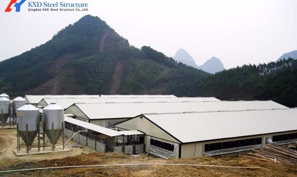 هيكل فولاذي خفيف الوزن مصنوع مسبقًا بيت الدجاج حظيرة الفولاذ بيت الدواجن